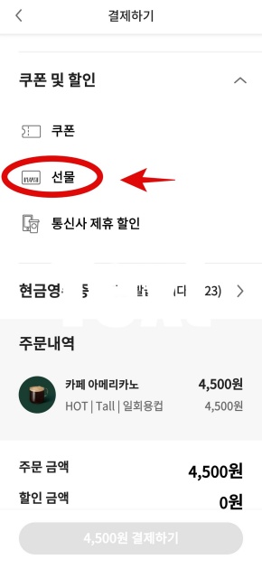 음료의 온도와 크기를 모두 선택하고 컵이나 일회용 컵을 보관한 후 실제 결제 화면으로 진행하면 된다. 당신은 나에게 실제 주문을 할 수 있고, 기프티콘 사용 여부만 확인하면 결제 화면으로 넘어가야 합니다.