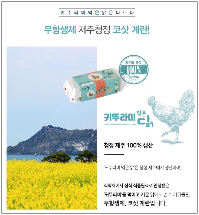 무공해 청정 자연 환경인 제주에서 길러서 더욱 믿고 먹을 수 잇는 코삿-계란 HACCP인증 받은 믿고 먹을 수 있는 귀뚜라미 먹은 닭이 낳은 무항생제 코삿계란 추천합니다~
